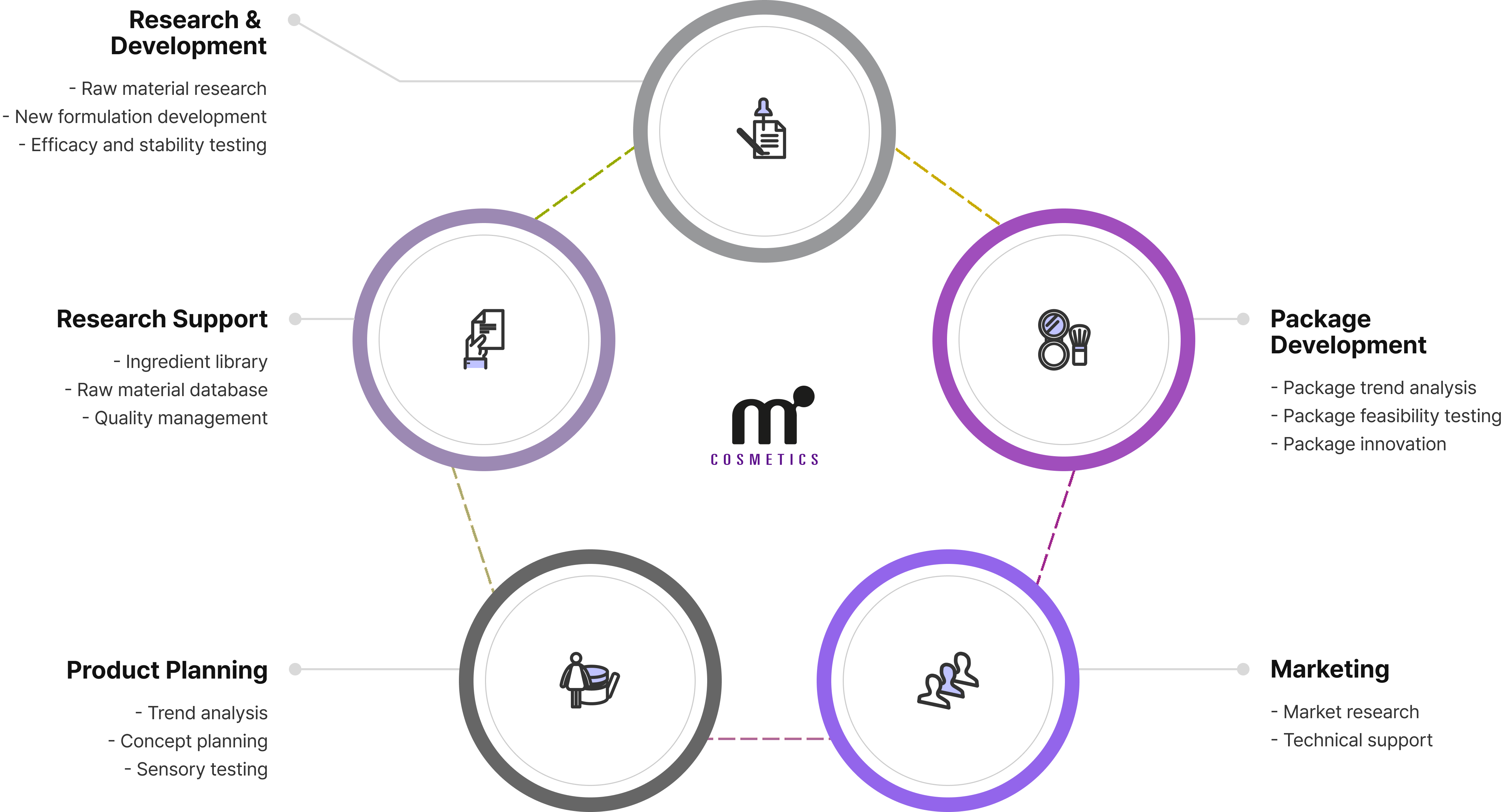 Monami Cosmetics strengthens its competitiveness in the global beauty market through its advanced R&I Center staffed with numerous experts. Our dedicated R&I Center conducts specialized research activities leveraging cutting-edge technology and expertise. By analyzing consumer needs and rapidly changing beauty trends through big data, we accelerate the development of customized formulations. This allows us to provide differentiated and innovative products that reflect the needs of consumers and markets, ensuring fresh value and competitiveness.
